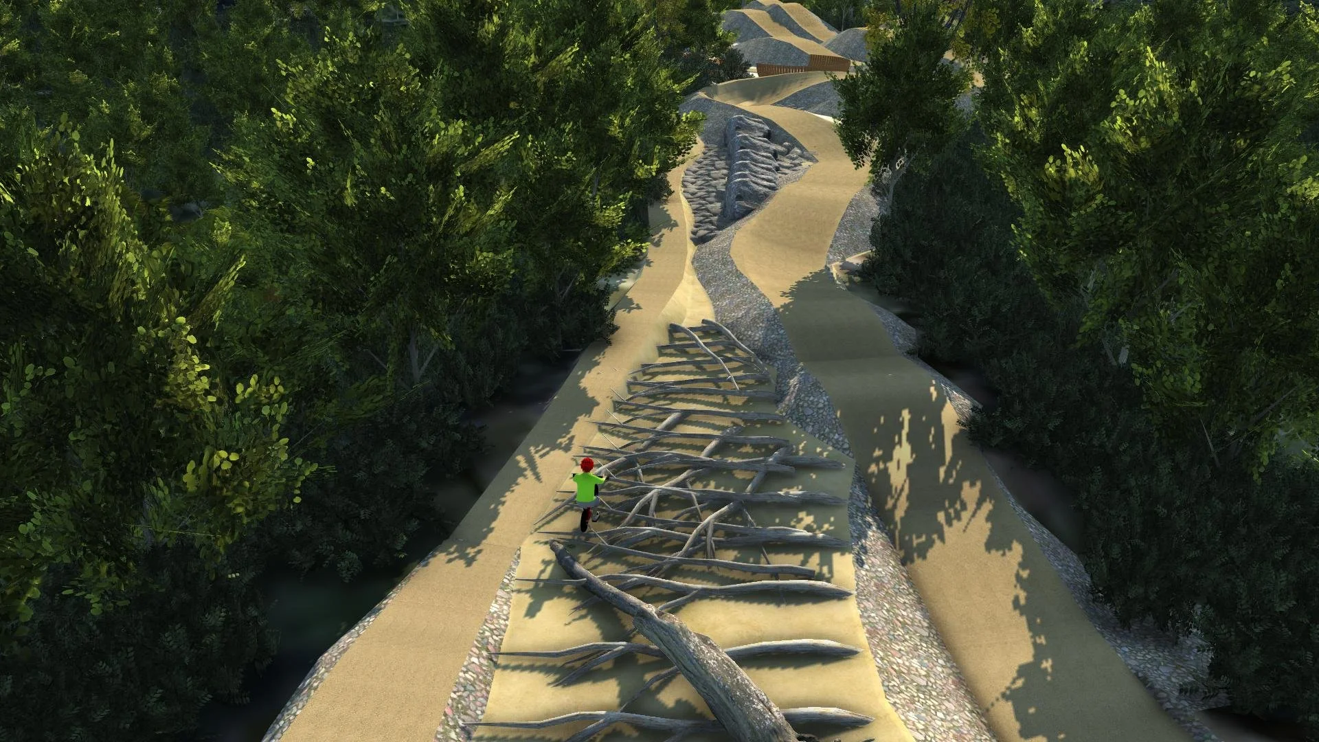 The terrain was analysed using a high-resolution 1m LiDAR model and GIS software to identify optimal alignments for the skills park.