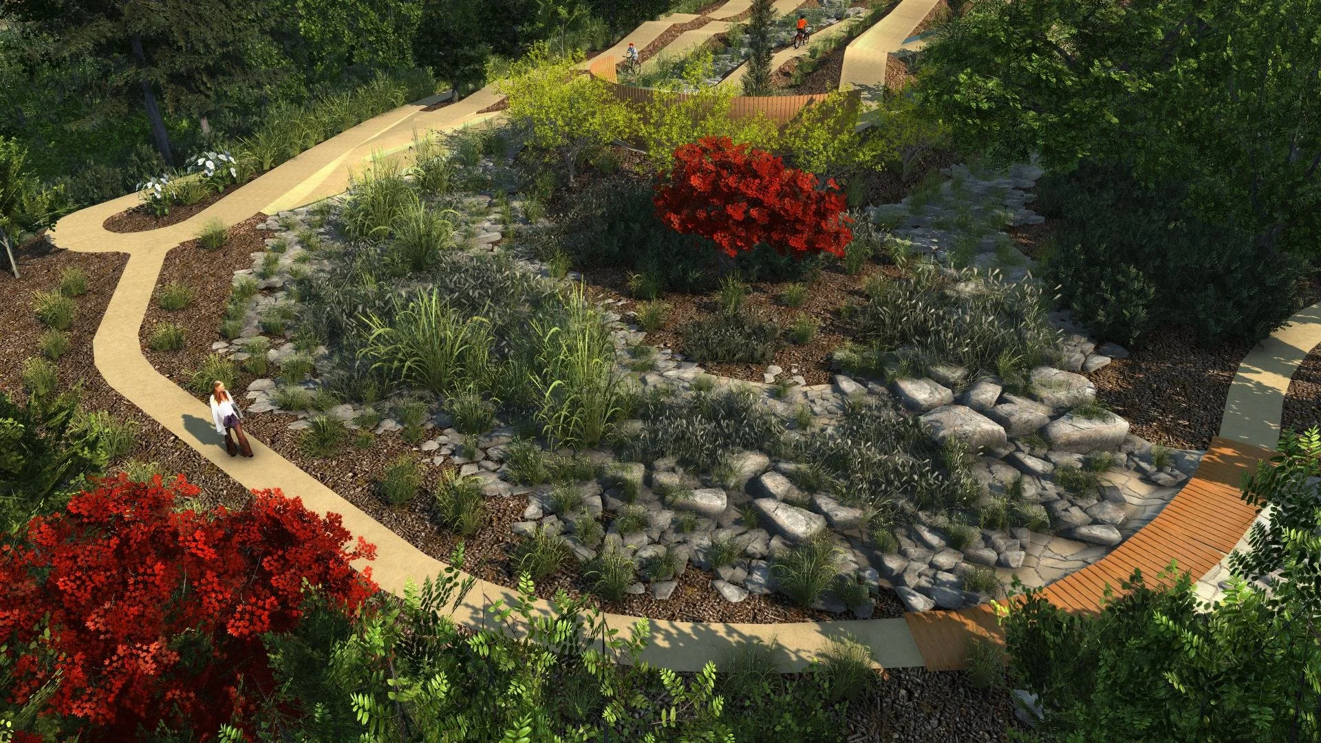 From the bottom of the park, a new trail meanders through the new native plantings and makes its way to Shuttlecock in the North.