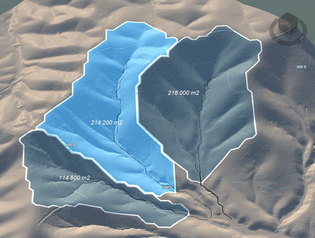 This analysis identifies major watercourses and potential flood zones to inform sustainable trail placement. It utilizes a LiDAR ground model, historical rainfall data, and runoff estimations to simulate water flow.